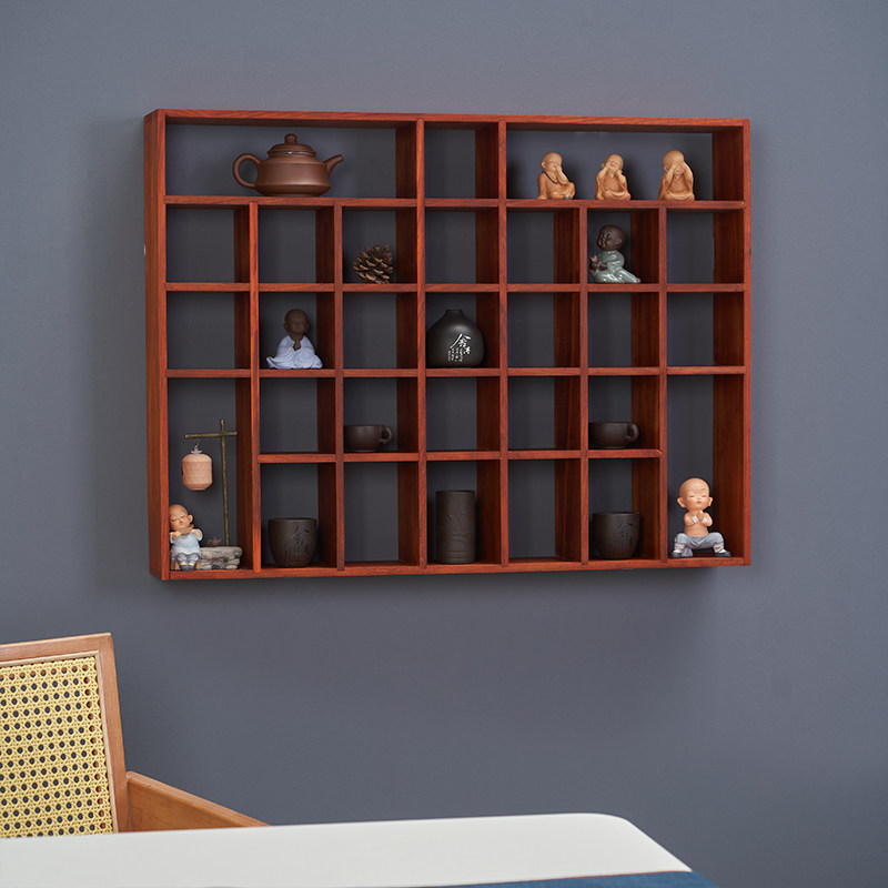 红木博古架实木中式壁挂墙上置物架花梨木茶壶茶柜子展示柜古董架