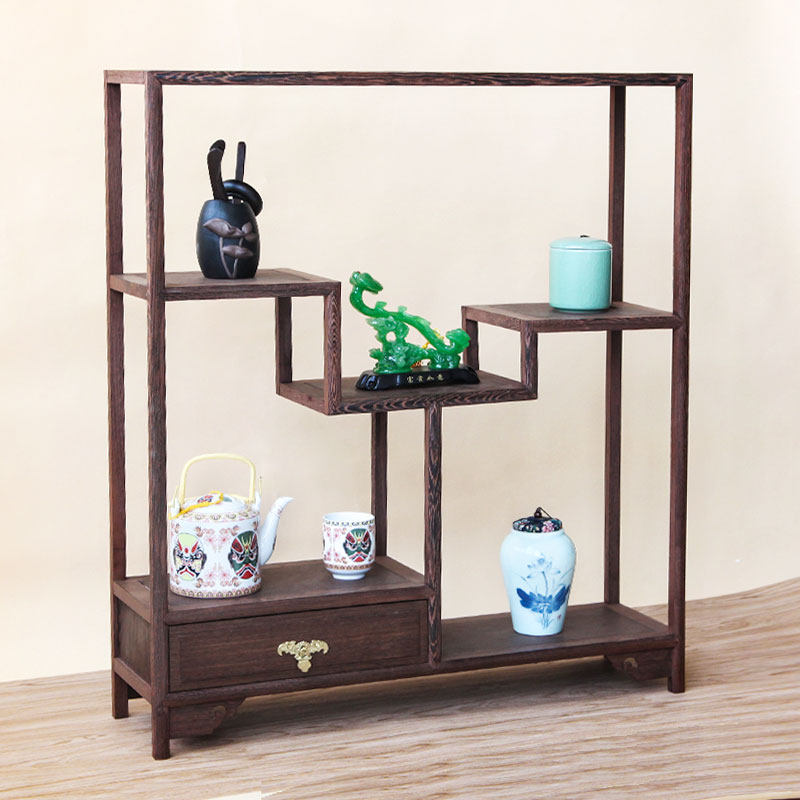 鸡翅木红木博古架实木质中式摆件架收纳柜茶具展示柜茶架子置物架