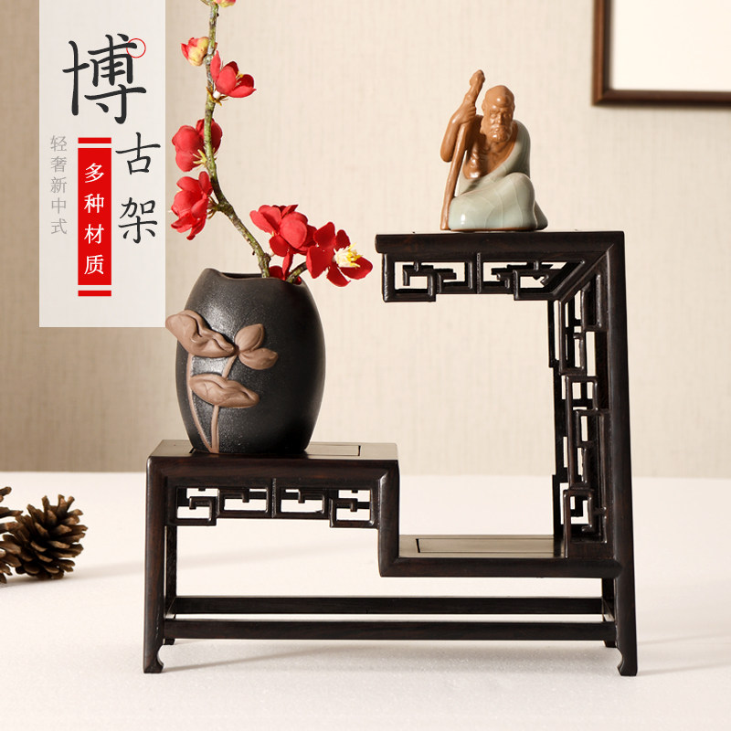 红木博古架茶壶茶杯茶具摆件工艺品底座花梨木实木花瓶茶道托架子