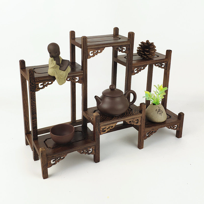 红木博古架小型多宝阁格鸡翅实木茶具架紫砂茶壶架子盆景展示架子