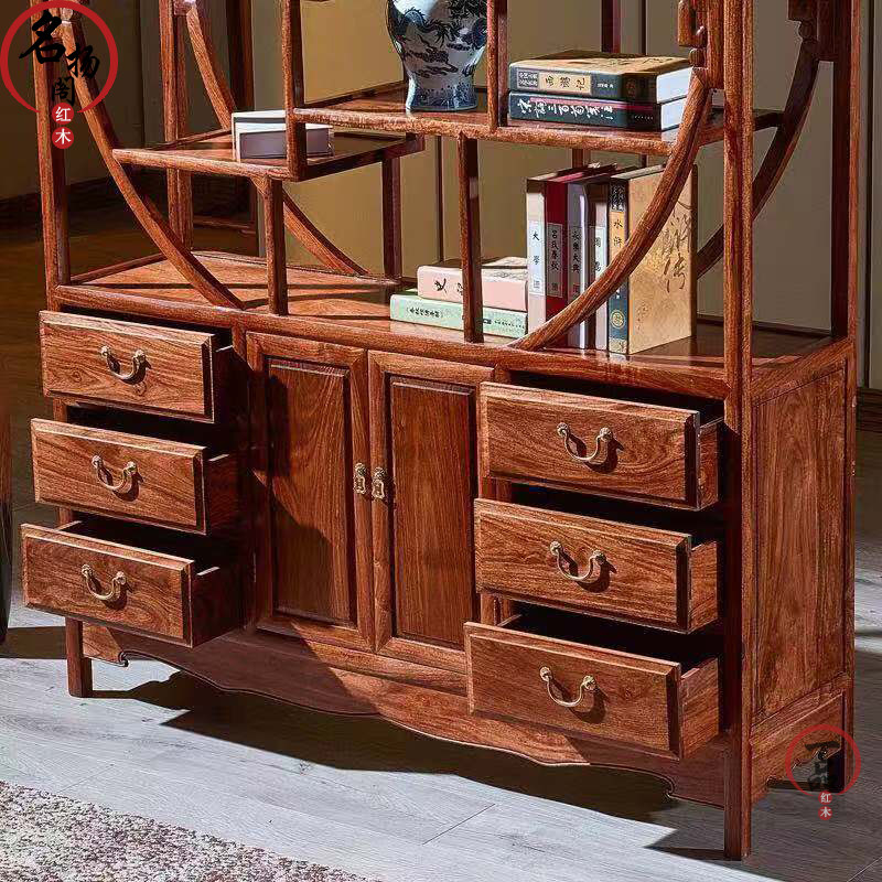 古典红木博古架现代高档大酸枝木玄关茶柜客厅隔断展示柜置物书架