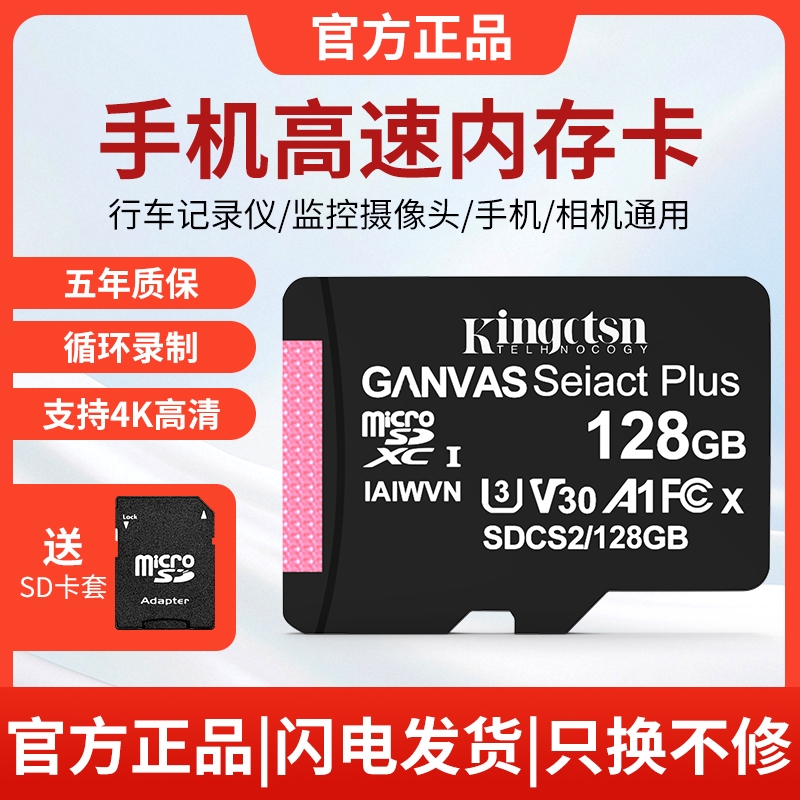 金士顿128g内存卡 手机监控摄像头高速sd卡 行车记录仪tf卡存储卡
