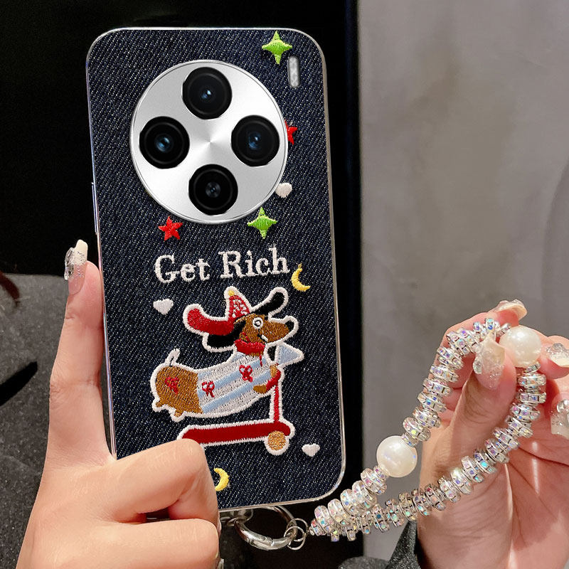 直边牛仔刺绣适用vivoX100手机壳女款9奢华S18PRO布艺Y73S高级感Y300PRO新品S15全包S19网红X80防摔6秋S10