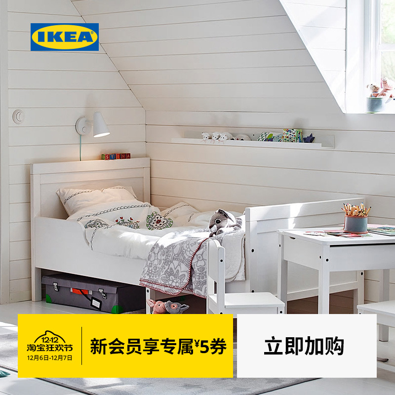 IKEA宜家SUNDVIK桑维加长床带床板实木儿童床可延长男孩女孩拼接