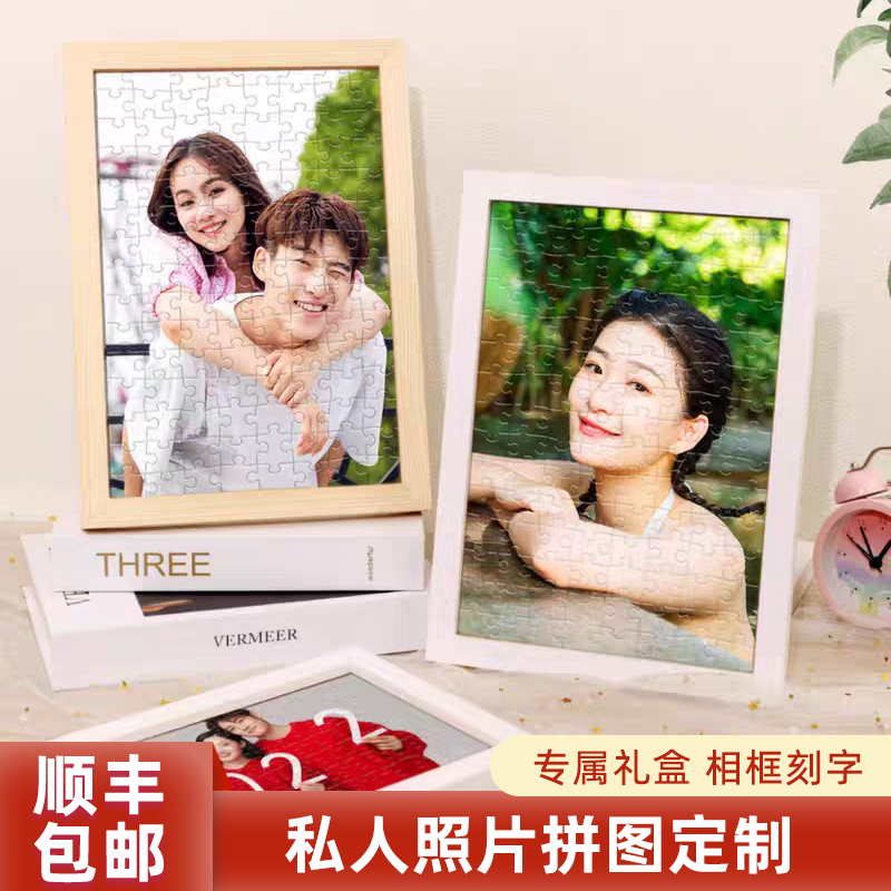 照片拼图定制人像七夕订制diy手工情侣生日礼物女朋友带相框相片