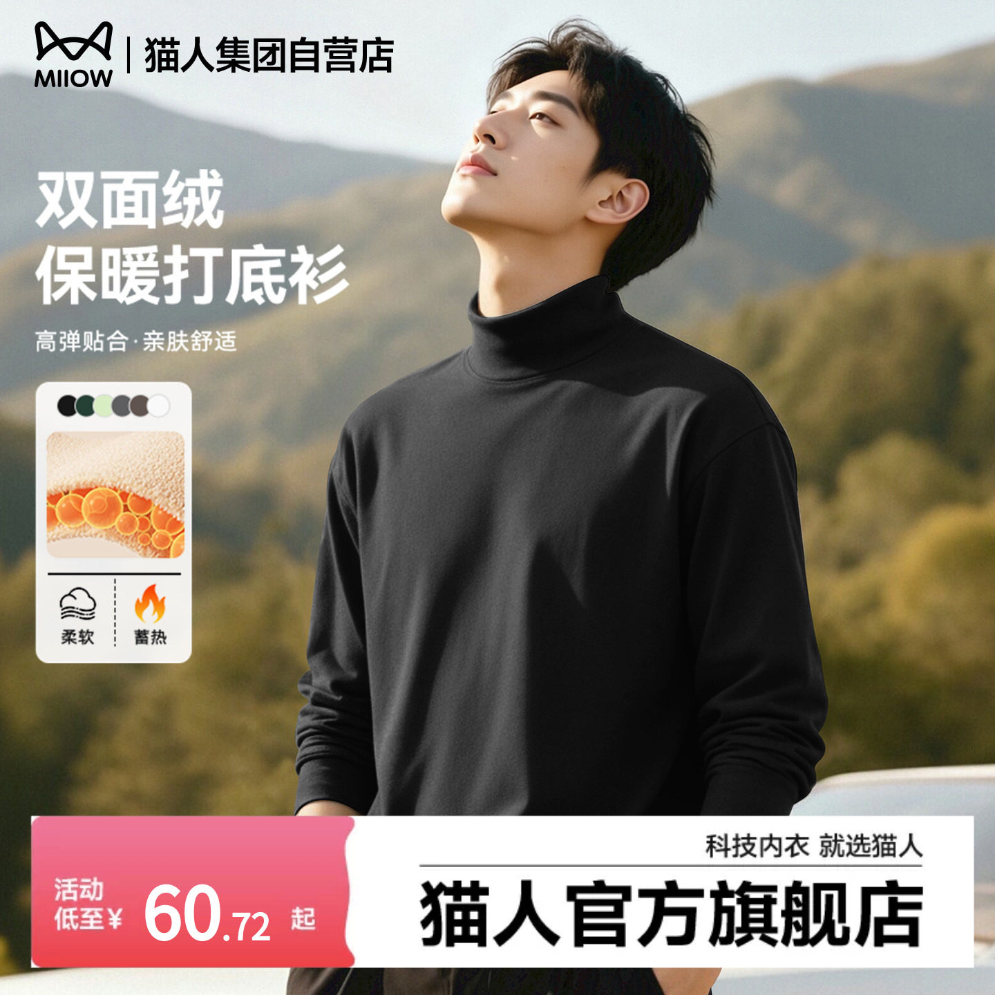 猫人高领打底衫男黑色宽松高级感男士长袖t恤冬保暖内搭上衣男款J