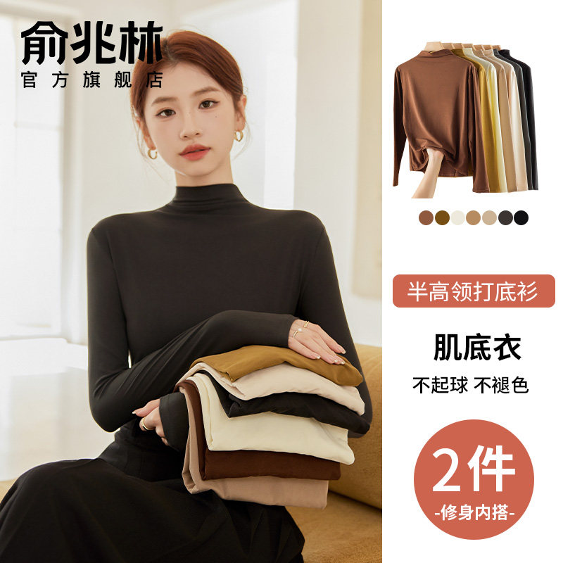 莫代尔高领打底衫女2025新款春秋冬内搭堆领长袖T恤爆款黑色上衣