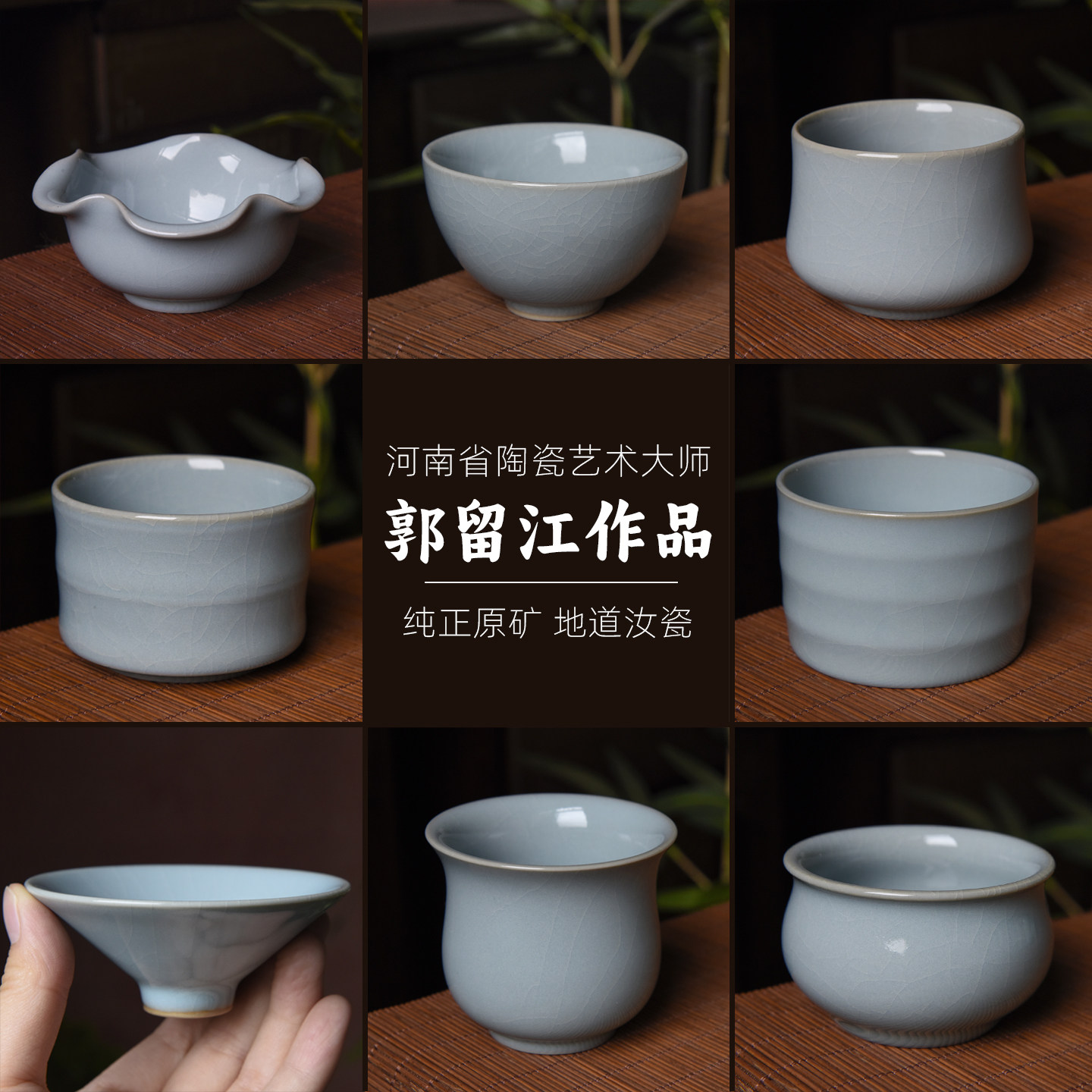 郭留江非遗大师 纯手工杯 汝州原矿汝瓷茶杯 主人杯 蝉翼纹 可养