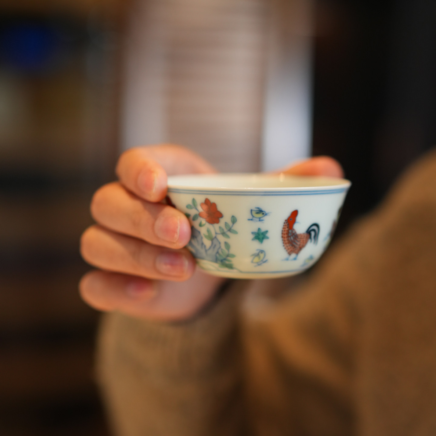 宛玉 致敬成化斗彩鸡缸杯 仿古复刻鸡缸杯 125ml缸杯 茶杯 主人杯