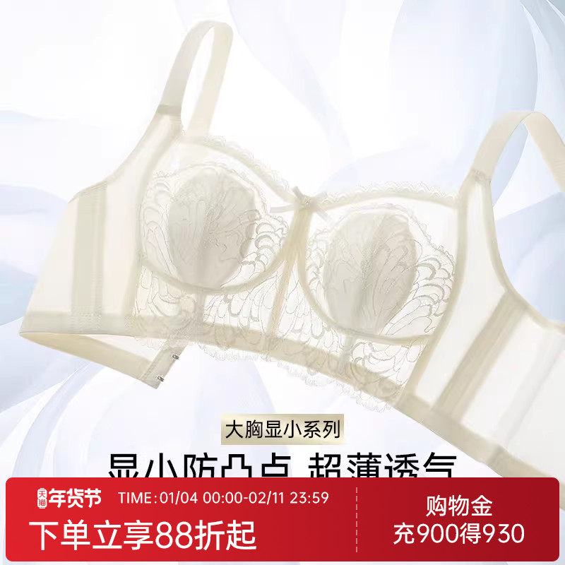 大胸显小内衣女大码薄杯聚拢蕾丝无钢圈调整型收副乳防下垂文胸罩