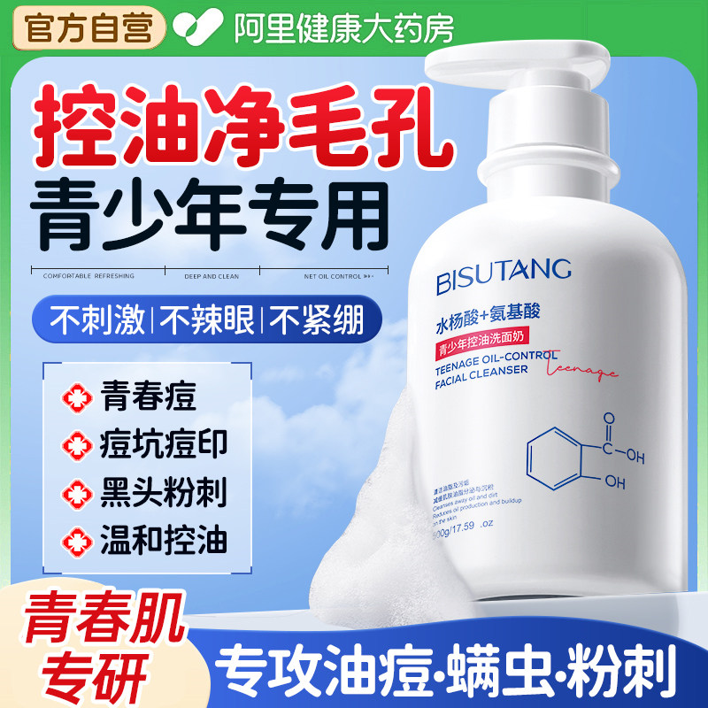 青少年洗面奶水杨酸祛痘印控油初中生12岁以上男女青春期学生专用