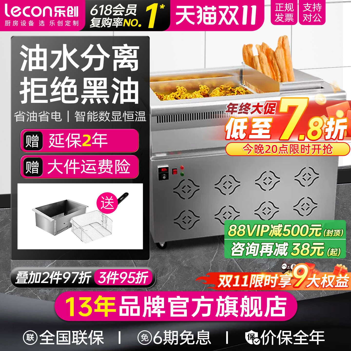 乐创电炸炉商用不锈钢单双缸大容量油炸锅炸鸡薯条油锅炸串油条机