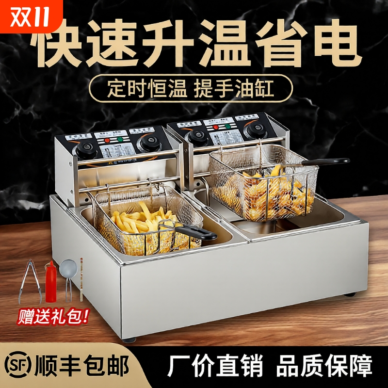 艾士奇油炸锅商用电炸炉电炸锅油条机炸串炸薯条薯塔机油炸机双缸