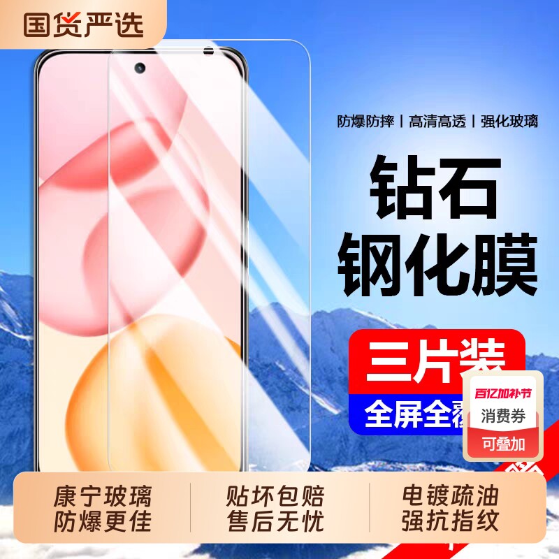 适用荣耀300钢化膜400/90/80手机膜GT/Pro/X70i/60/50/40Play9C/8T/7T/6C/5全屏覆盖Magic7防摔高清膜畅玩