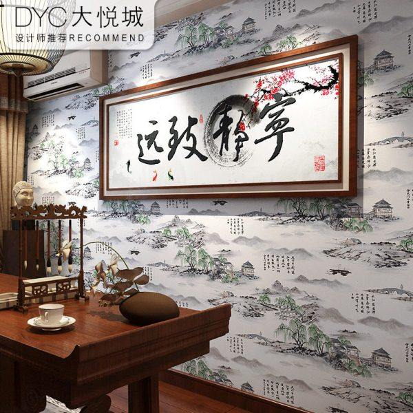 新中式墙纸饭店茶室仿古典禅意店铺装修复古风格中国风壁纸非自粘