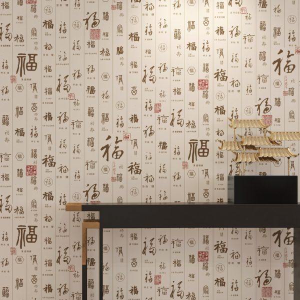新中式墙纸有福福字文化茶道茶室中国风壁纸茶楼包间壁纸饭店背景