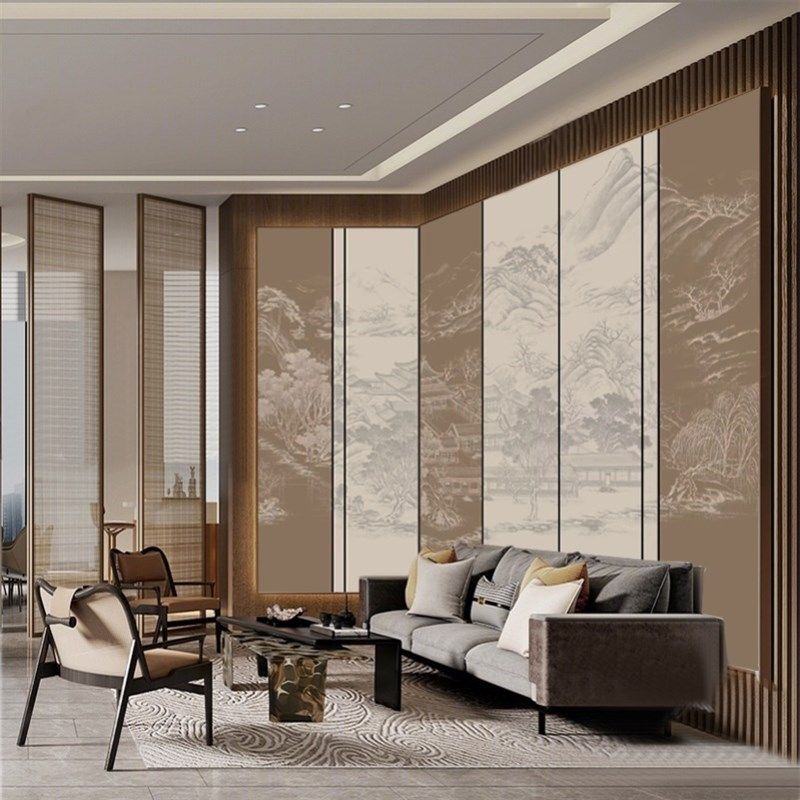 客厅电视背景墙壁纸影视墙墙布新中式墙纸大气尺寸定制整张壁布画