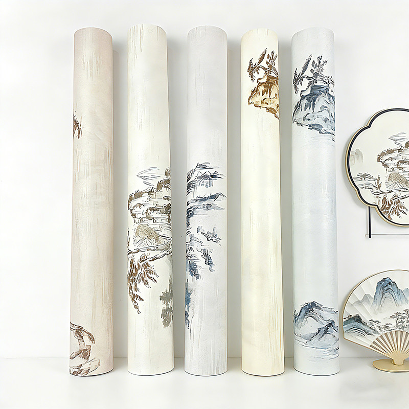 禅意古风新中式墙纸山峰松石客厅背景墙书房茶楼餐厅酒店民宿壁纸