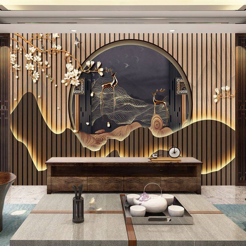 3d客厅影视墙新中式电视背景墙壁纸壁画2025新款电视墙自粘8d壁布