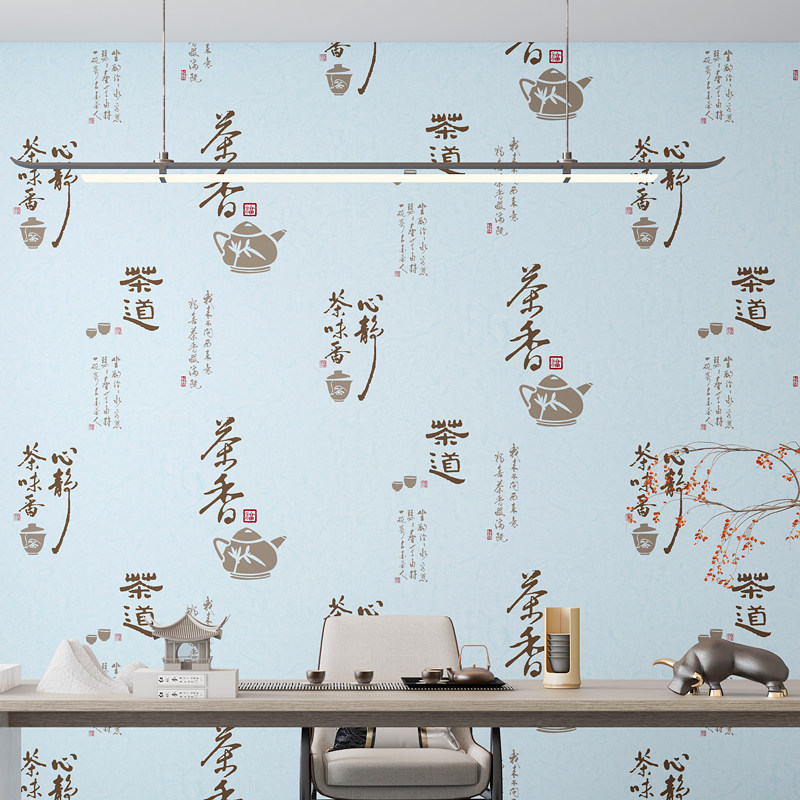 新中式墙纸茶艺文化茶道茶室中国风书法壁纸茶楼包间壁纸饭店背景