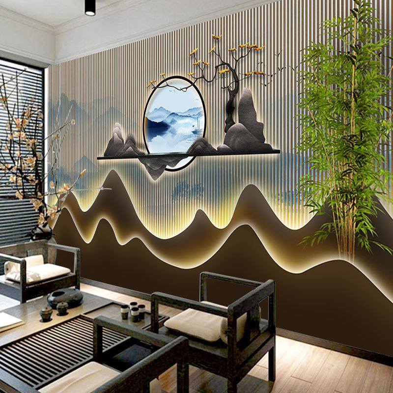 3d立体新中式墙纸中国风山水客厅壁画茶室直播背景墙酒店装饰壁纸