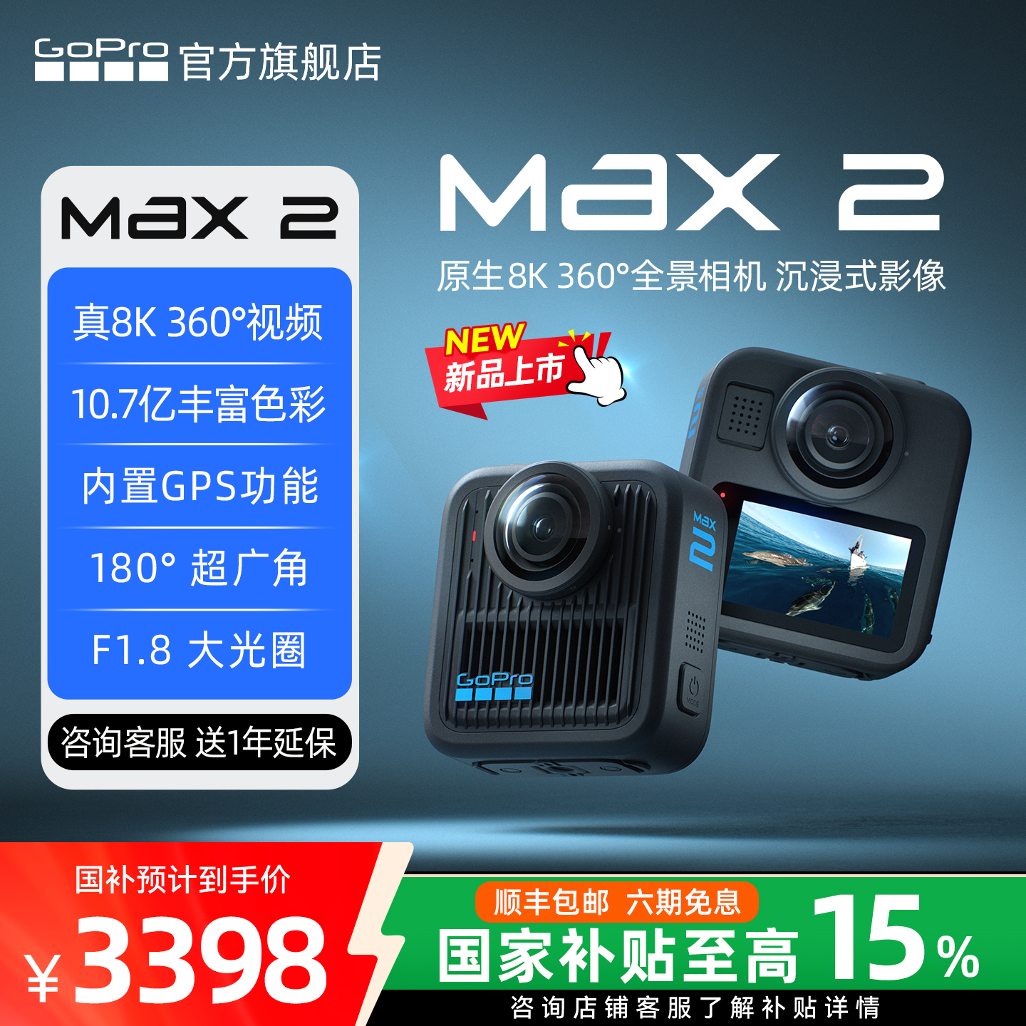 【新品】GoPro MAX2 360全景运动相机 真8K/180°超广角/F1.8光圈