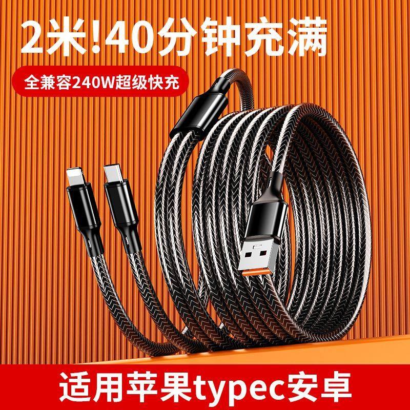 一拖二数据线超级快充适用双华为Typec苹果17安卓小米oppo荣耀二合一加长2米闪充车载编织线同时充