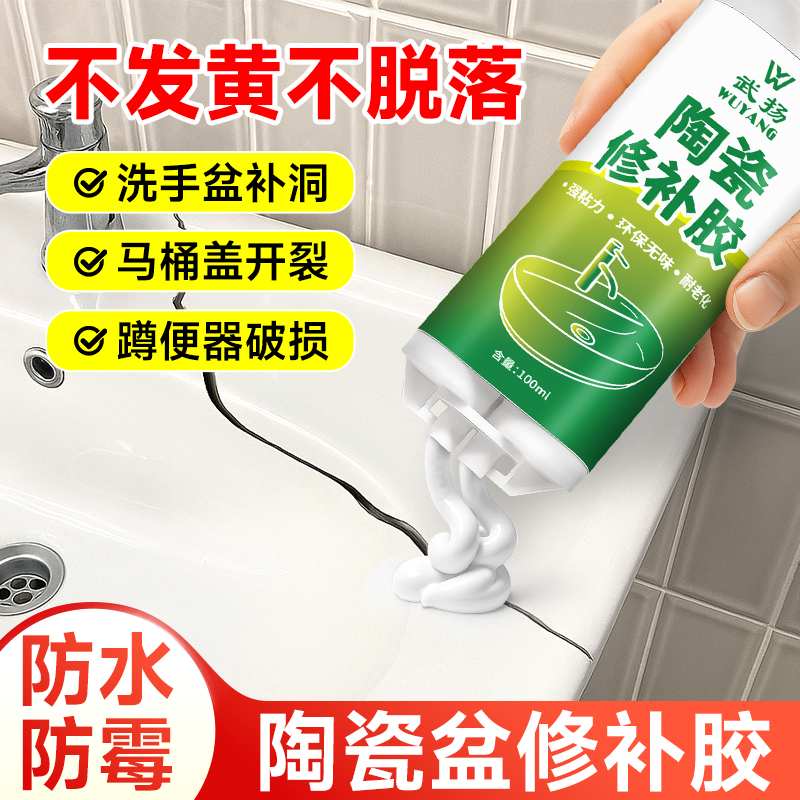 陶瓷修补胶釉面强力瓷砖裂缝搪瓷锅洗手盆修复膏防水粘浴缸马桶盖蹲便器瓷器面盆地砖无痕修补粘合陶瓷胶水
