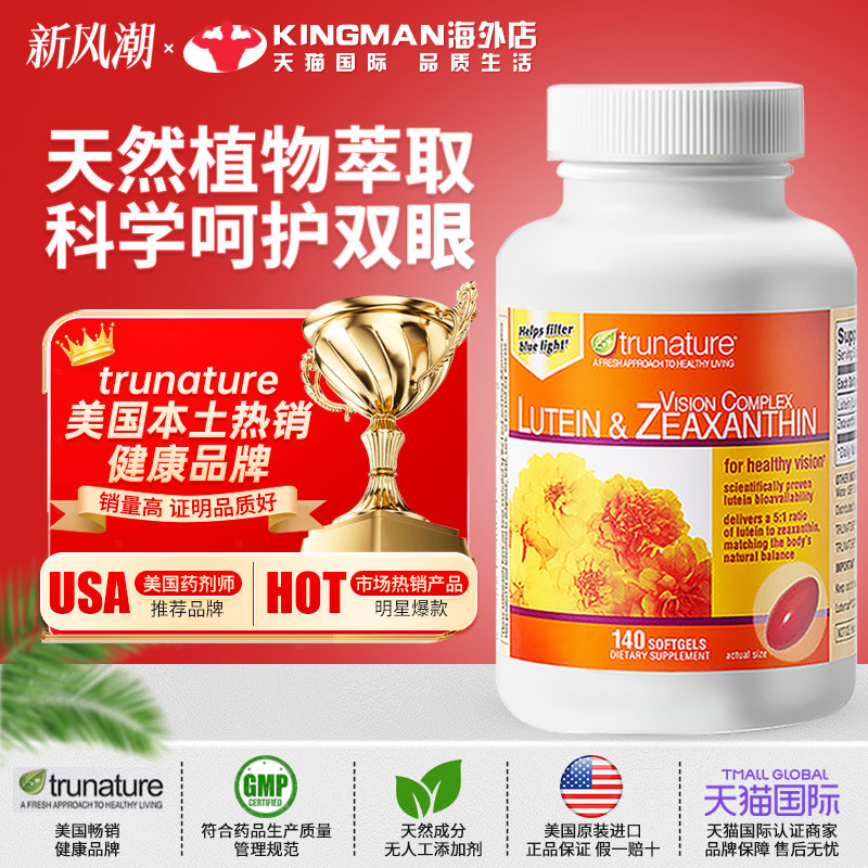 美国进口TruNature纯天然叶黄素胶囊成人青少年护眼片专利护眼丸