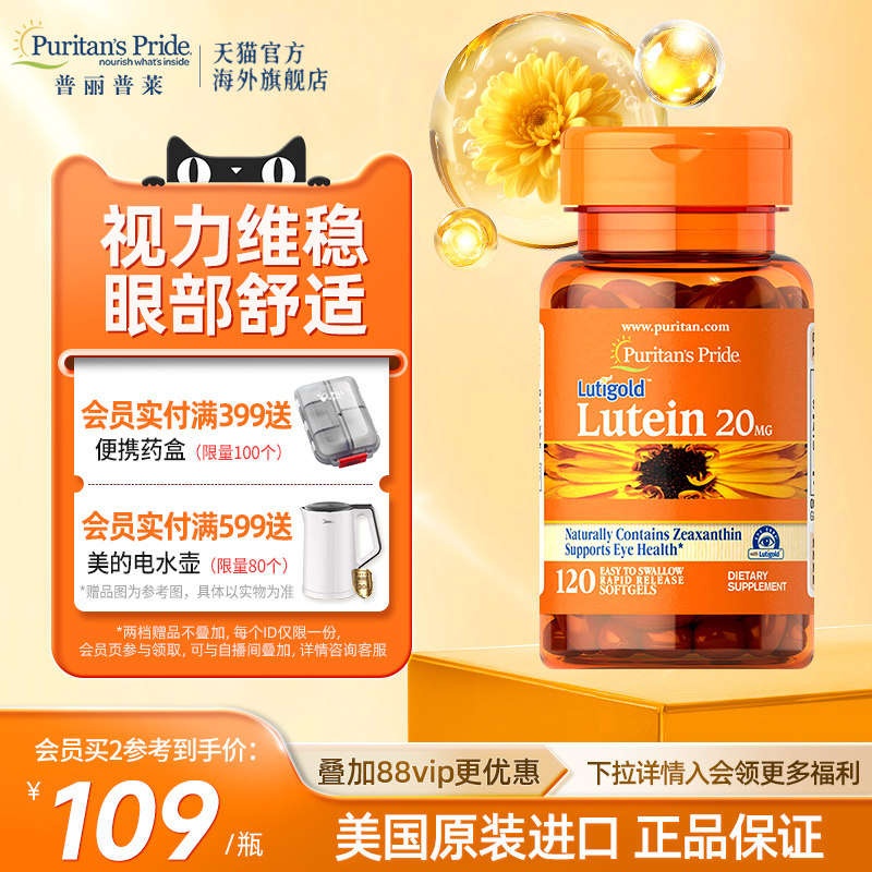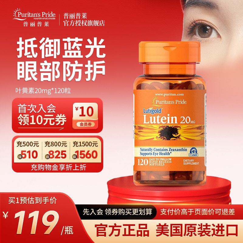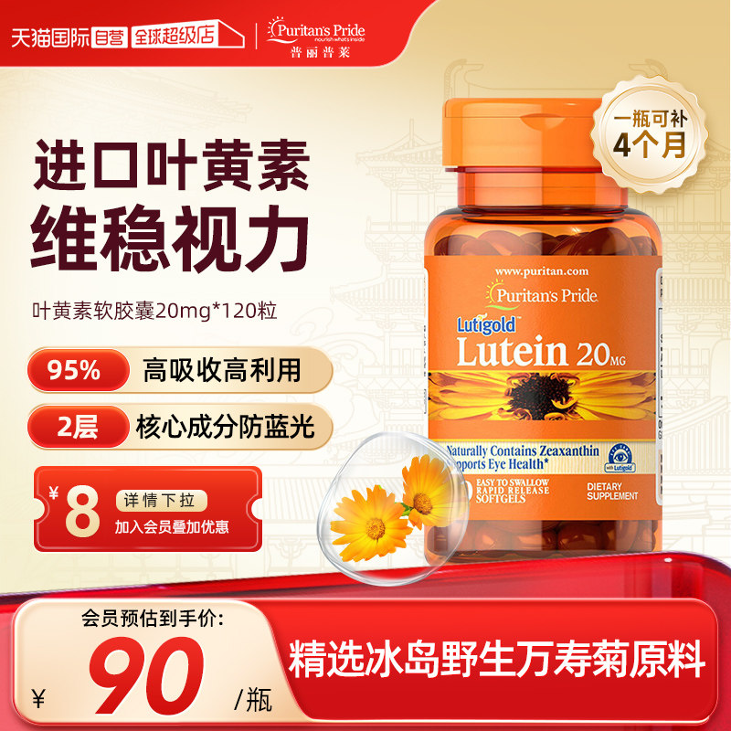 普丽普莱叶黄素软胶囊 美国原装进口玉米黄素20mg120粒眼睛