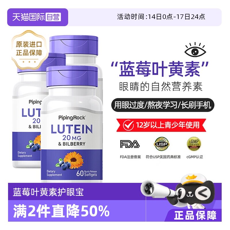 美国朴诺叶黄素 进口蓝莓片胶囊护眼丸专利护眼保健品海外旗舰店