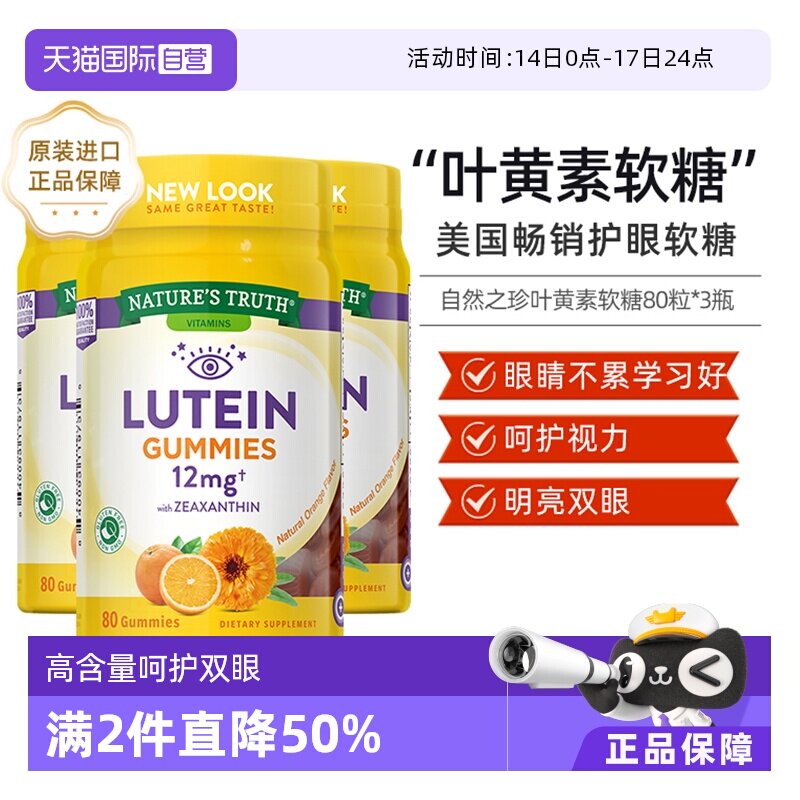 自然之珍叶黄素美国专利护眼软糖片保护视力保健品儿童成人护眼片