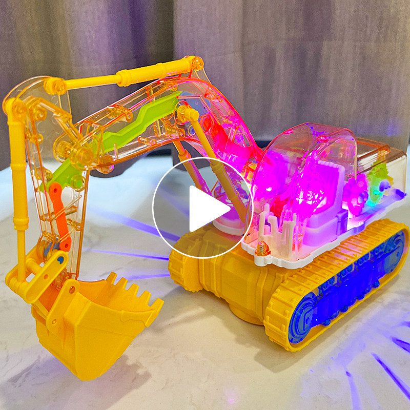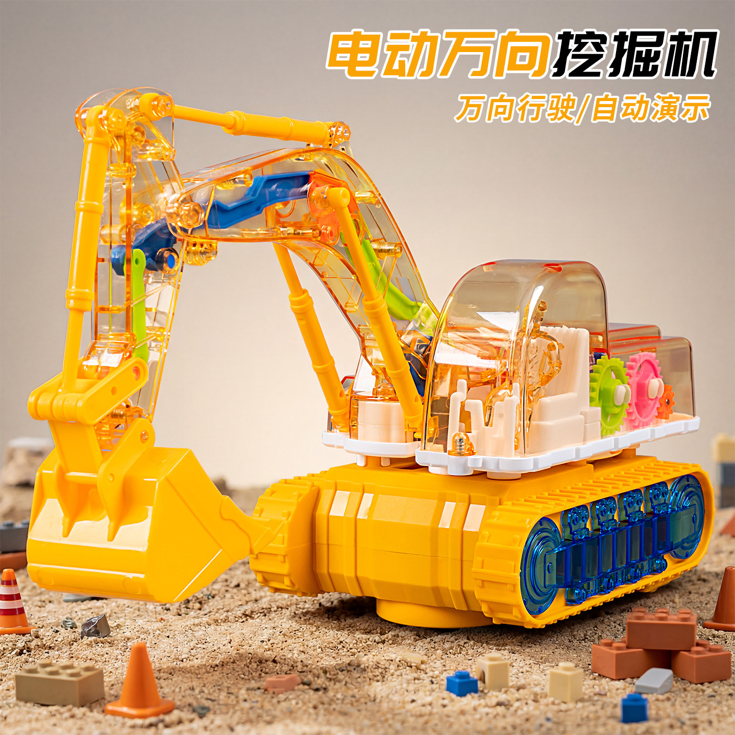 电动挖掘机仿真万向儿童挖土机男孩3到6岁透明齿轮车玩具网红爆款