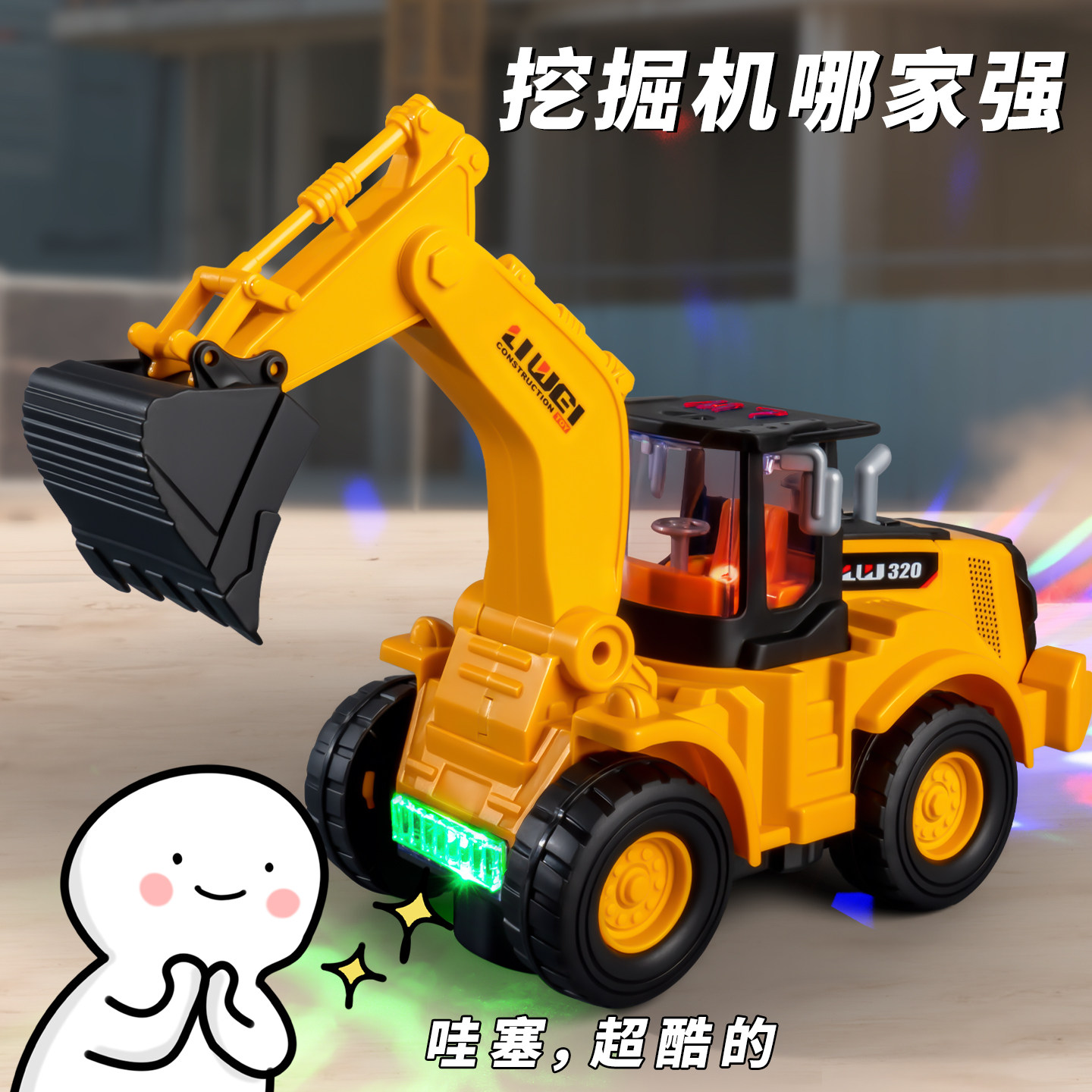 儿童电动挖掘机玩具男孩灯光音乐声光万向工程车有声跑灯玩具礼物
