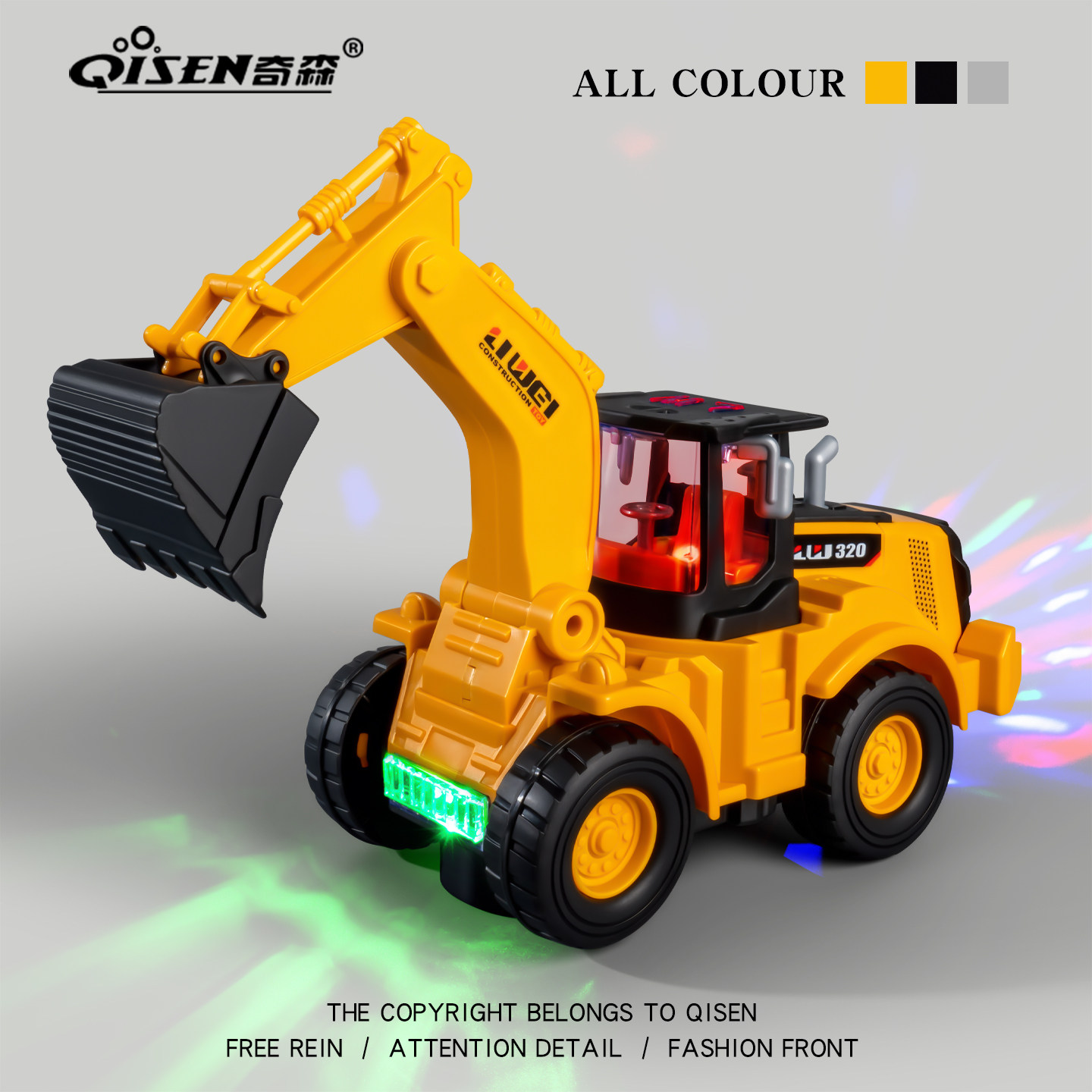 儿童电动挖掘机玩具男孩闪光音乐电动万向工程车地摊夜市小玩具车