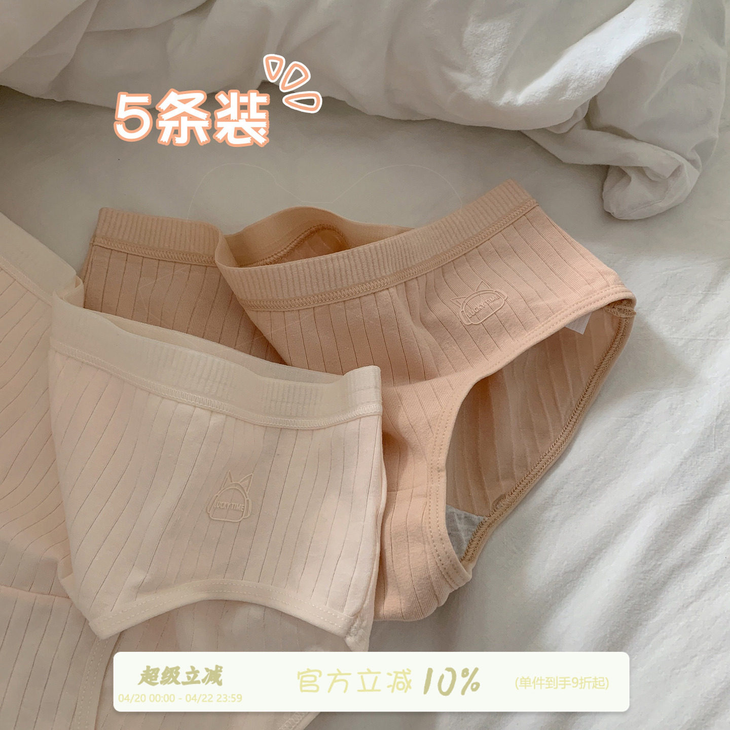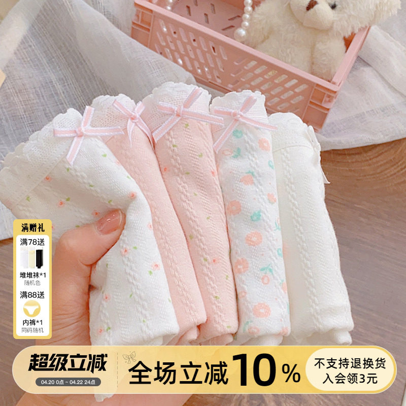 小美好~5条内裤春夏粉色少女学生法式甜美中腰100%全棉内裤女纯棉