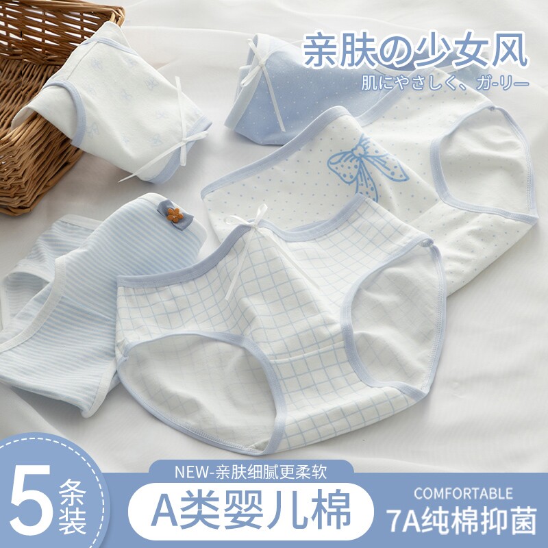 5条女士高中学生内裤纯棉100%全棉抗菌裆中腰日系少女三角裤
