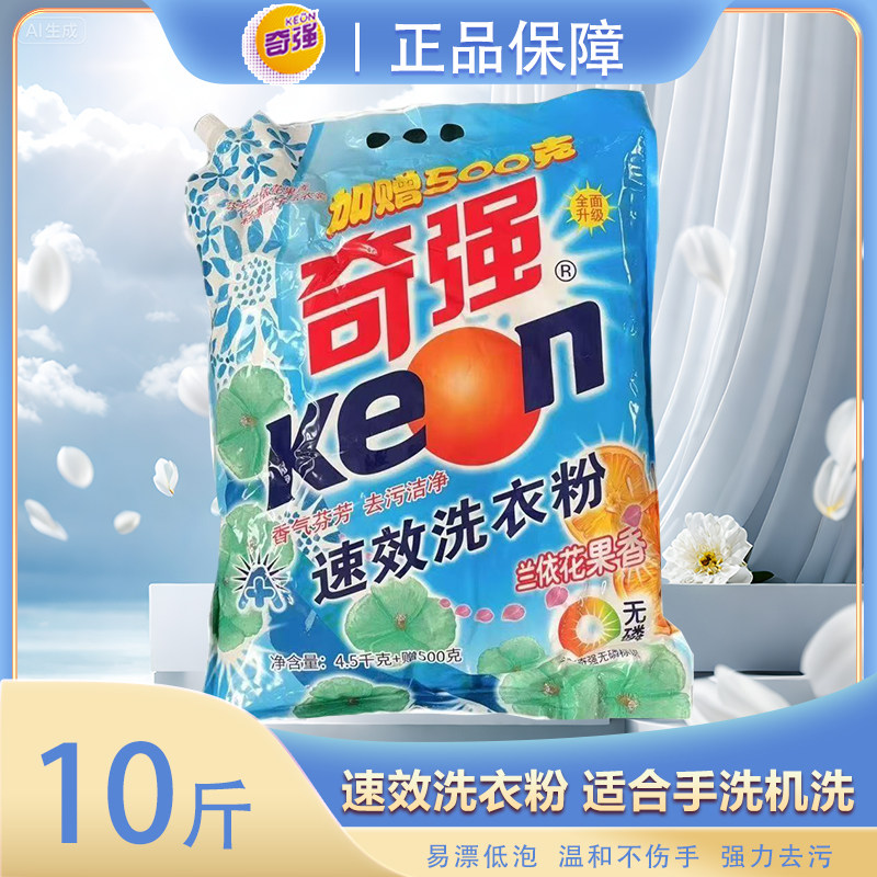 10斤奇强洗衣粉护色特大袋无磷去污兰依香味老牌子正品带盖防潮嘴