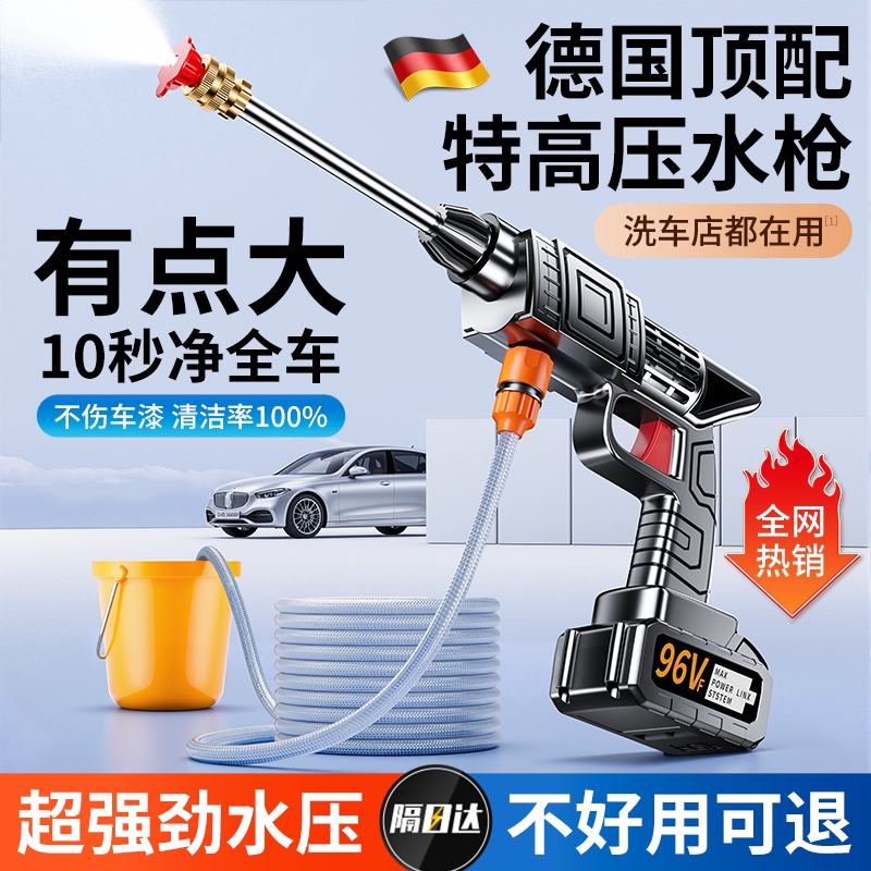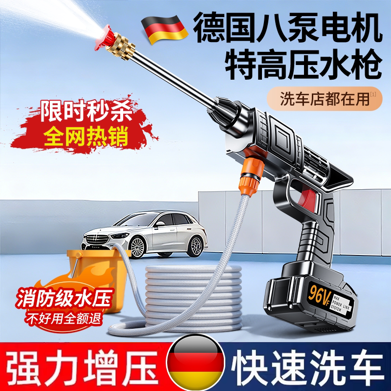 德国洗车高压水枪家用无线锂电池220v喷水枪清洗机洗窗户洗地神器