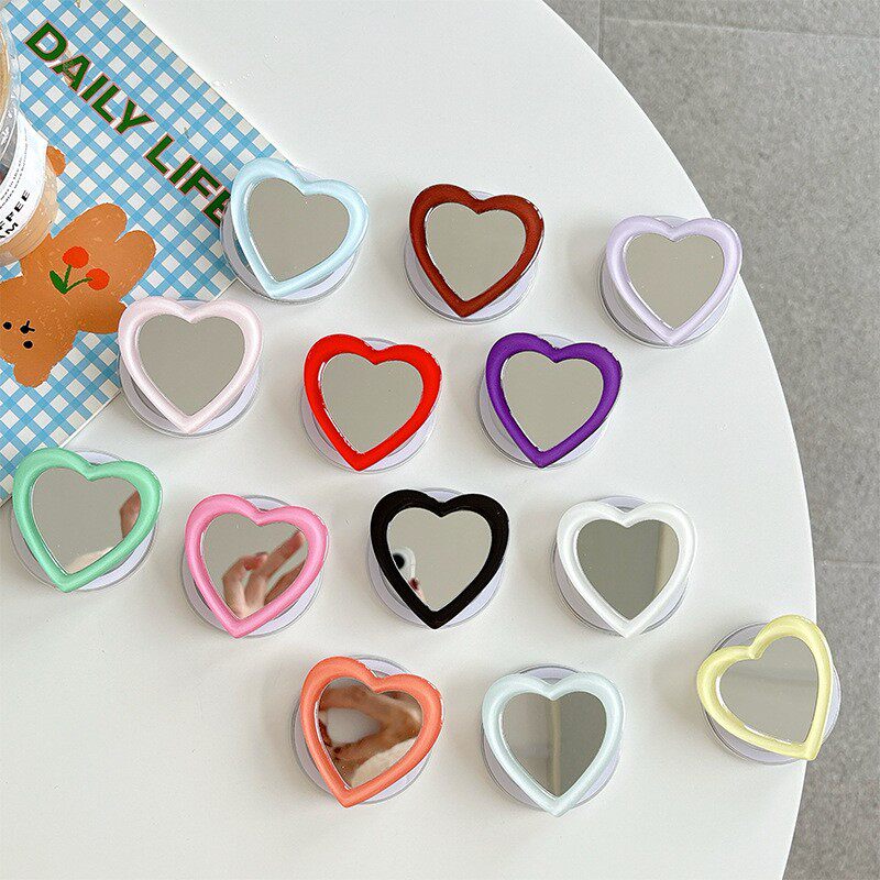 纯色爱心镜面韩国手机支架气囊伸缩折叠磁吸懒人桌面支撑指环批发