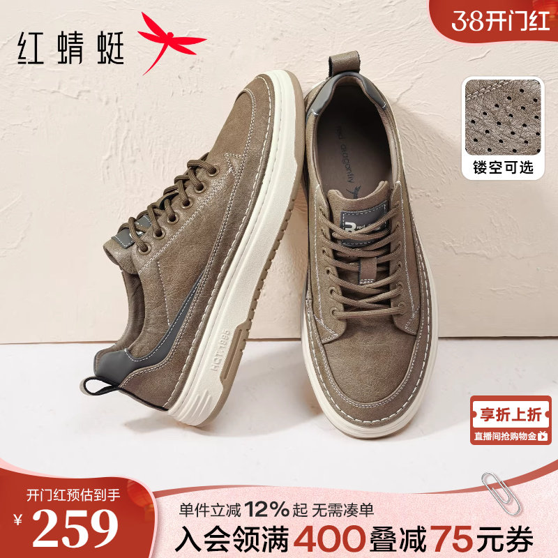 红蜻蜓男士休闲鞋春秋平底鞋子男款舒适百搭男生黑色工装板鞋皮鞋