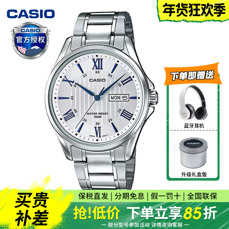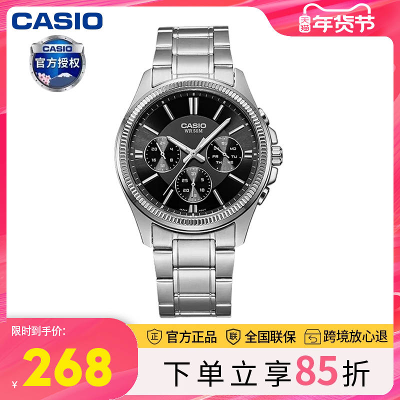 卡西欧手表男官方正品石英电子表钢带商务简约男士礼物MTP-1384D