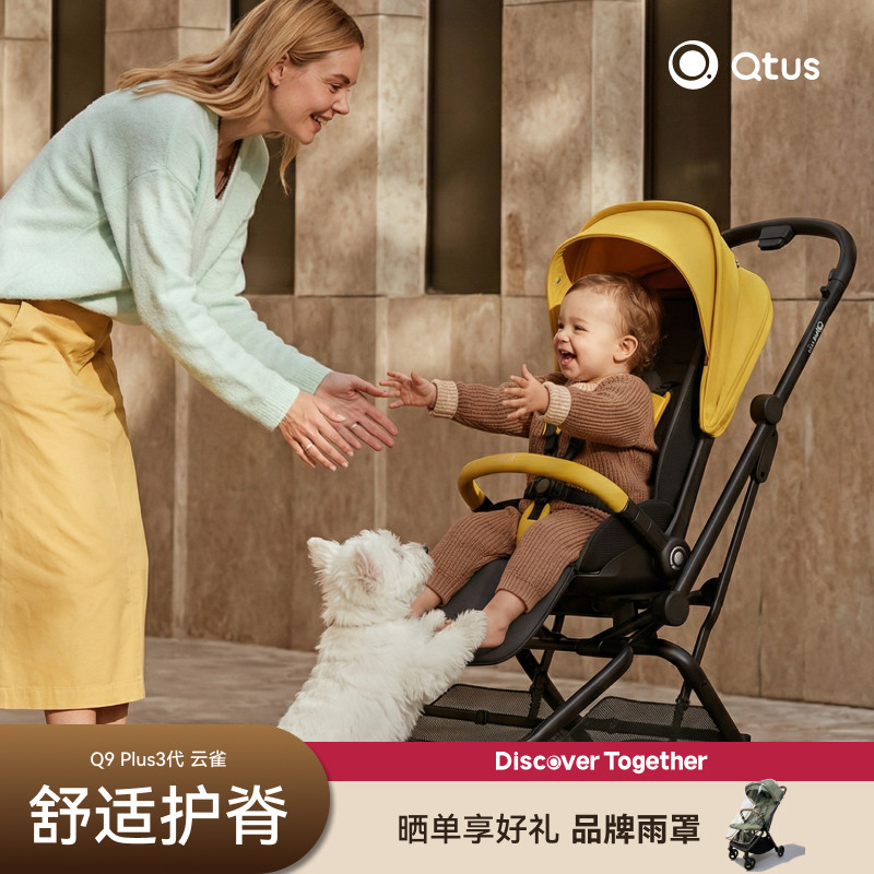 Qtus昆塔斯Q9plus3代新生儿护脊360°双向四轮推车婴儿车遛娃车