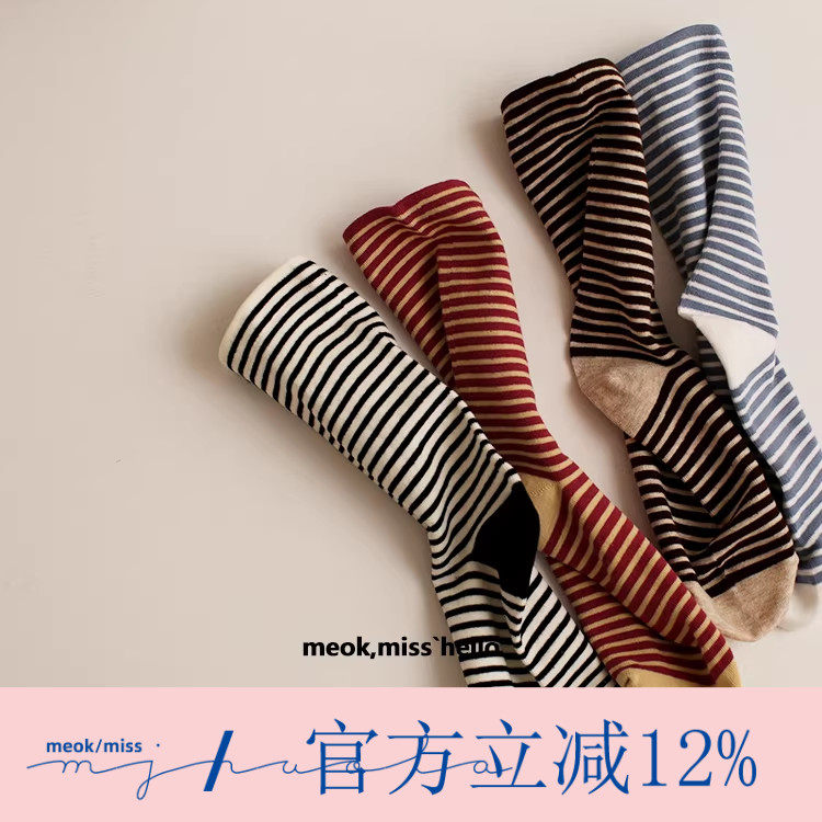 日系少女韩版ins潮流四季款中筒袜糖果色保暖条纹学院风纯棉女袜
