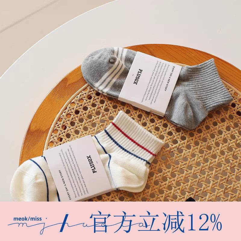 无骨缝合韩系ins情侣款纯棉女袜子吸湿排汗透气条纹运动短筒男袜