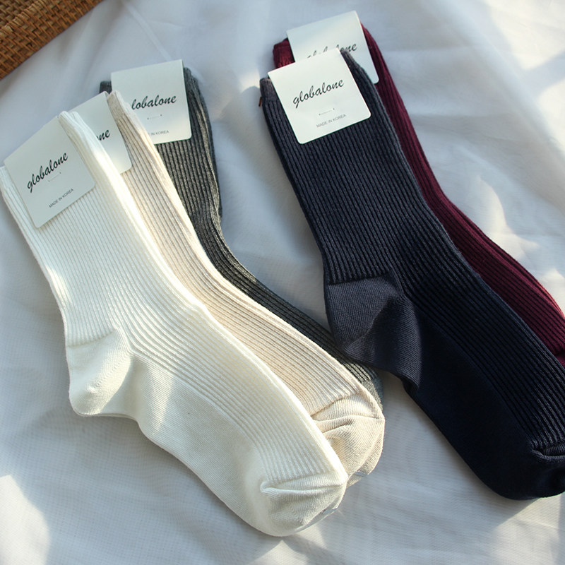 清仓 春秋冬纯棉女袜子韩国简约百搭休闲基础款竖条纹白色中筒袜