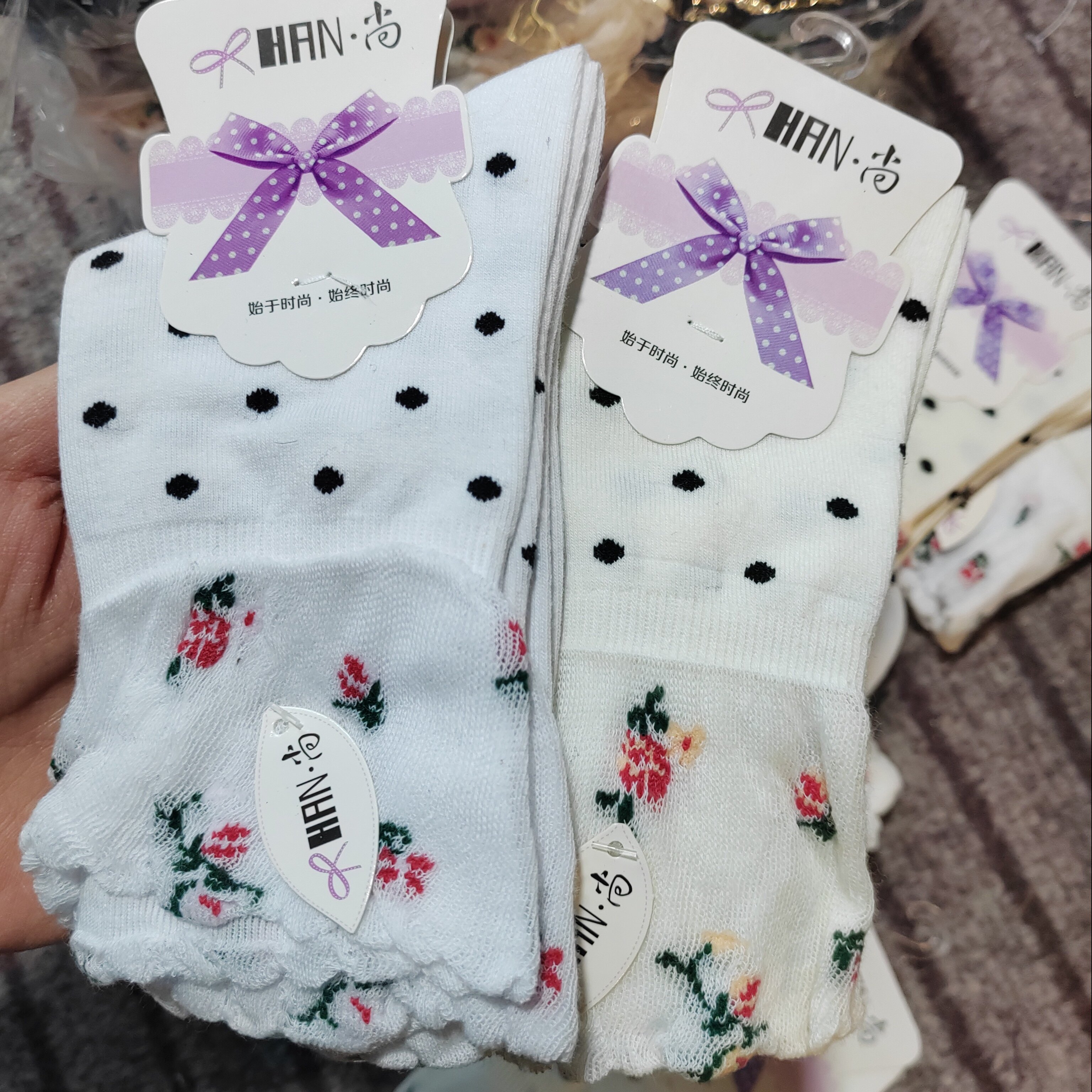 纯棉女袜秋冬保暖中筒袜ins潮日系百搭无骨袜碎花配勃肯鞋堆堆袜