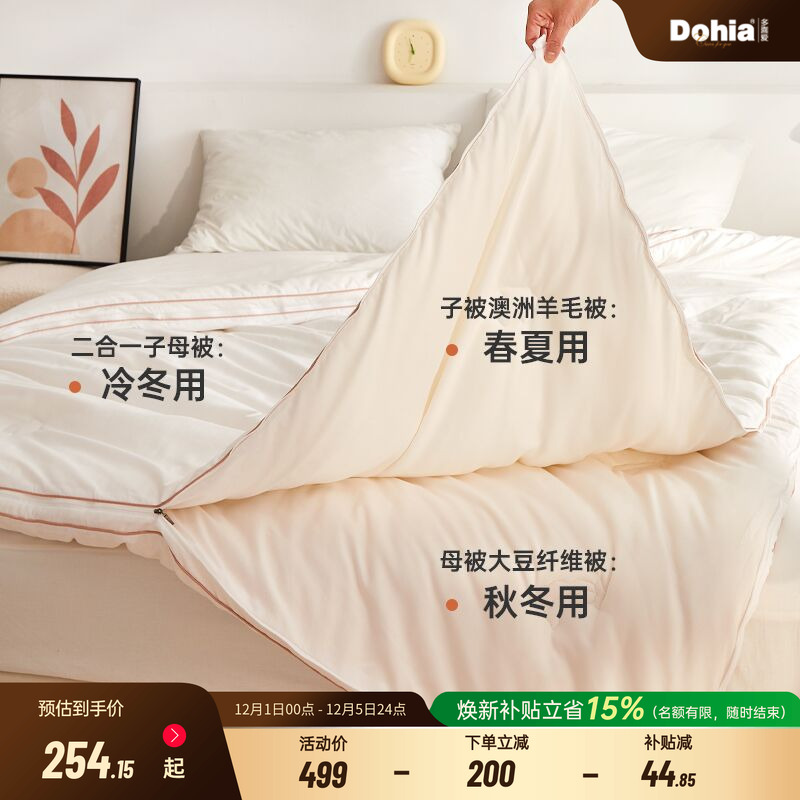 多喜爱蚕丝澳洲羊毛子母被二合一春秋被冬被拉链蚕丝被子被芯学生