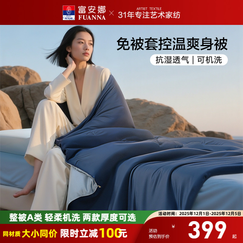 富安娜冬被子母棉被四季被保温深度睡眠整被A类可机洗控温爽身被