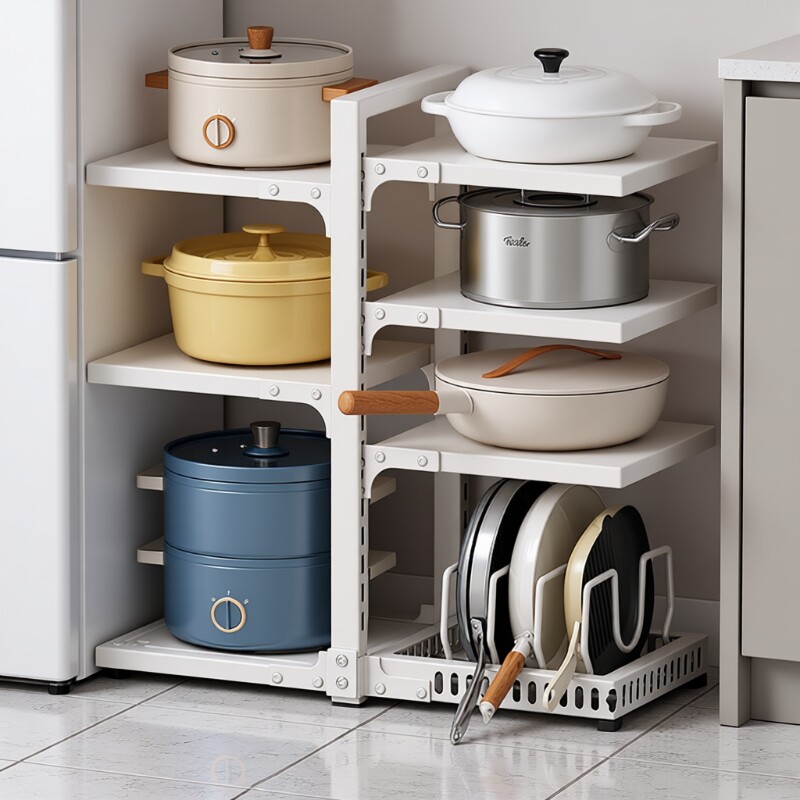 厨房置物架多功能家用锅具收纳架水槽下落地多层可调节高度锅架子